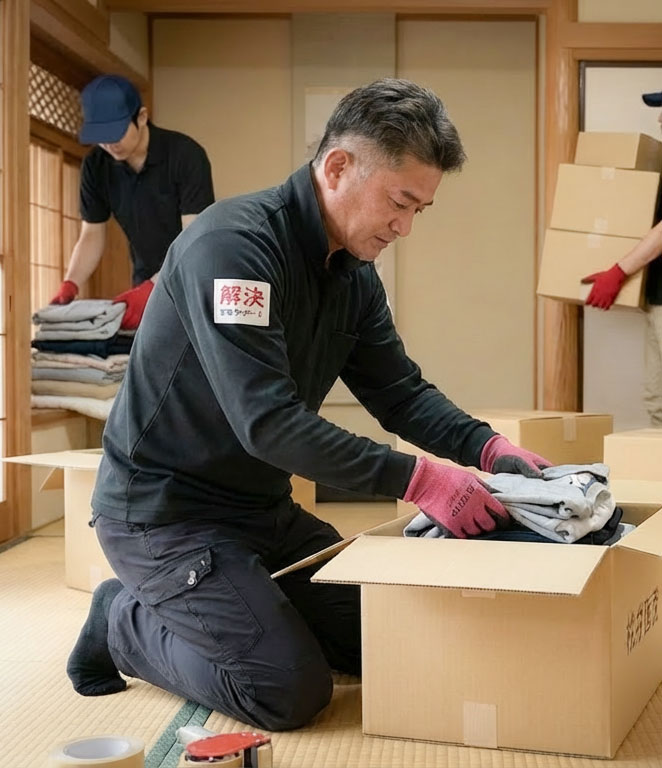 お客様第一の片付け貴金属や現金などは必ず一時保管し、作業終了後にまとめてご返却しいたします。